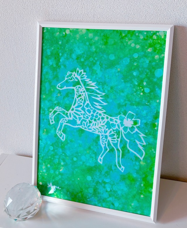 Filled with Light|光に満ちて 2026年 開運干支アート 自分を癒し、満たし、 幸せなリズムで歩みながら 光を広げていく。 そんな想いを込めて描いた、 白い馬の切り絵作品です。 ⸻ オリジナルで制作した切り絵をデジタル化し、 高品質プリントに仕上げました。 静かな光とやさしい気配を感じていただける一枚です。 ⸻ 作品仕様 ・A4サイズ ・高画質プリント ・光沢紙 ・フレーム入り ・壁掛け立てかけ両用 ※写真では背景の水色が際立って見えることがありますが 実物は全体的に緑色系で 光の玉がたくさん散りばめられています。 ※光の当たり方により、 白の表情や背景の光の印象が やわらかく変化します。 ⸻ こんな方へ ・自分を大切にする一年を過ごしたい方 ・心を整え、満たす時間を持ちたい方 ・癒しや自己愛をテーマにしている方 ・やさしい雰囲気の干支アートを探している方 ・お部屋やワークスペースに静かな光を迎えたい方 ・がんばりすぎず、穏やかな一年を始めたい方 ‥‥‥‥‥‥‥‥‥‥‥ *安心してお迎えいただくために、以下をご確認ください。 *こちらの商品は送料込みです。 *複数の開運干支アートを リビング・玄関・寝室・オフィスなど 場所を分けて飾ったり、並べてお楽しみいただくことで、 お部屋の空気や流れをより心地よく感じていただけます。 *年始のご挨拶や、大切な方へのプレゼントにもおすすめです。 ※返品は、到着後3日以内のご連絡かつ 以下の場合のみ対応させていただきます。 ・ご注文と異なる商品が届いた場合 ・到着時点で商品が破損していた場合 ※ご注文から原則7日以内に クリックポストにて発送いたします。 郵便ポストに入らない場合は不在通知となることがあります。 発送通知後3日以内に届かない場合は、 最寄りの郵便局または管轄の郵便局へお問い合わせください。 ※ご注文枚数が多い場合は、 ヤマト運輸で発送することがあります。